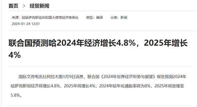 2023年上半年,哈薩克斯坦吸引投資132億美元,比過去5年的平均水平(117億美元)高出12.8%。聯合國預測2024年哈薩克斯坦經濟將增長4.8%,2025年將增長4%