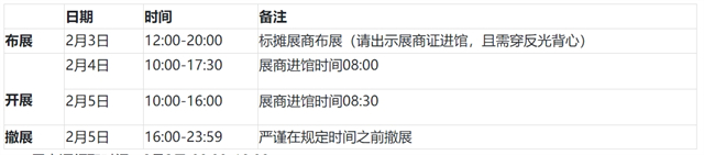 展商證領(lǐng)取時(shí)間:2月3日 08:00-18:00